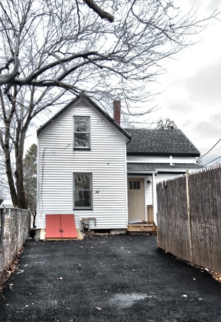 I bought a site that had a circa 1735 house (the green one) on it that was moved there in the 60's from 2 miles away. I moved the house once again, to the corner of the lot, and did a historic rehabilitation on it. Then I built 4 townhouses on the lot.